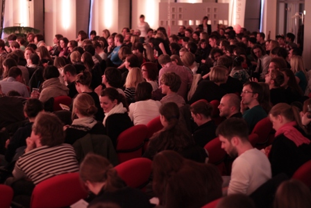 Um zum Festival zu gelangen, braucht es aber eine gewisse Entschlossenheit. Niemand geht einfach so in das Foyer des Turms und fährt in die 27. Etage. In den letzten beiden Jahren war das Festival in den ehemaligen Kinos Astoria (2009) und Capitol (2010) veranstaltet worden. Die Vorteile liegen auf der Hand: echte Kinoatmosphäre, ausreichende Größe und entsprechende Infrastruktur. Und außerdem reichte das Festival mit diesen Veranstaltungsräumen in die Stadt hinein, und das städtische Leben brandete auf die Treppen vor bzw. in den Kinos. So wurden auch Zufallsgäste aufmerksam und durch die Trauben von Menschen, die rauchend und trinkend zwischen den Blöcken vor den Kinos standen, bemerkte die Stadt: es ist Kurzfilmzeit. Doch während das Astoria mittlerweile ein charakterloser Hörsaal der Uni mit schlechter Akustik ist, ist das Capitol, ein Baudenkmal, entkernt worden und wird vom Privatinhaber neugestaltet – teure Wohnungen sollen entstehen.